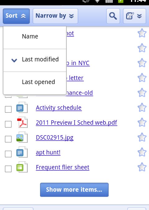 The latest update allows you to to sort and share multiple docs in your mobile docs list. However, these features don’t work reliably on older devices. Here is a list of known compatible mobile devices: